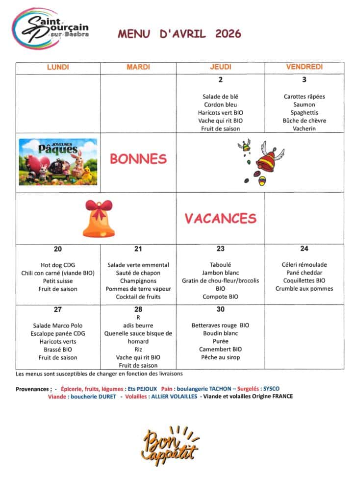 Retrouvez les menus de la cantine
