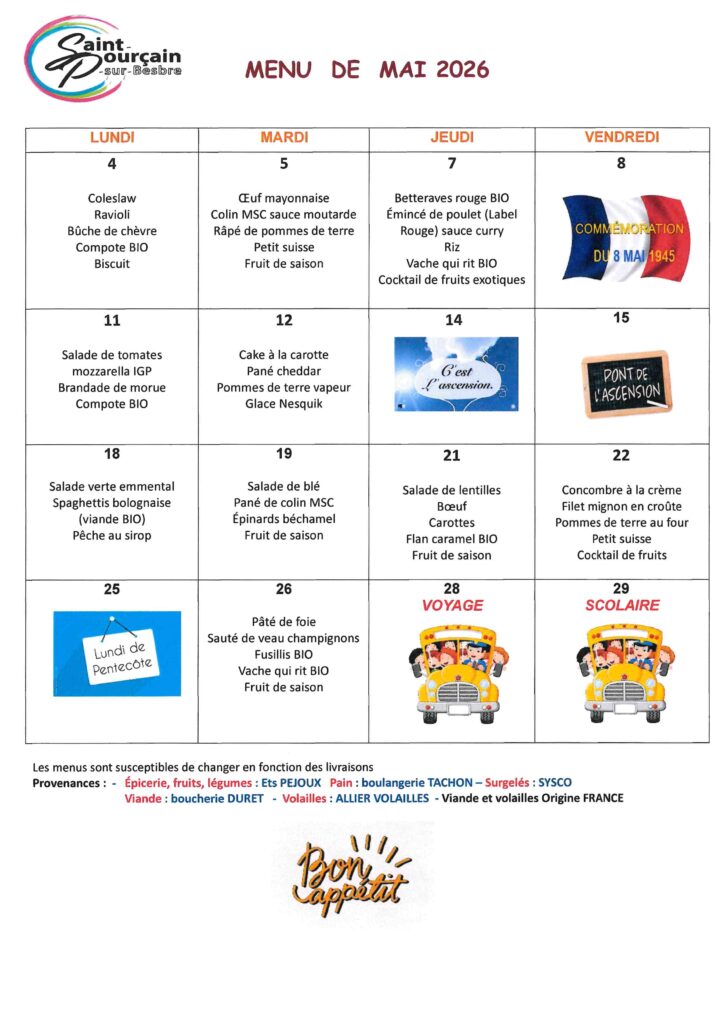 Menu Mai 2026